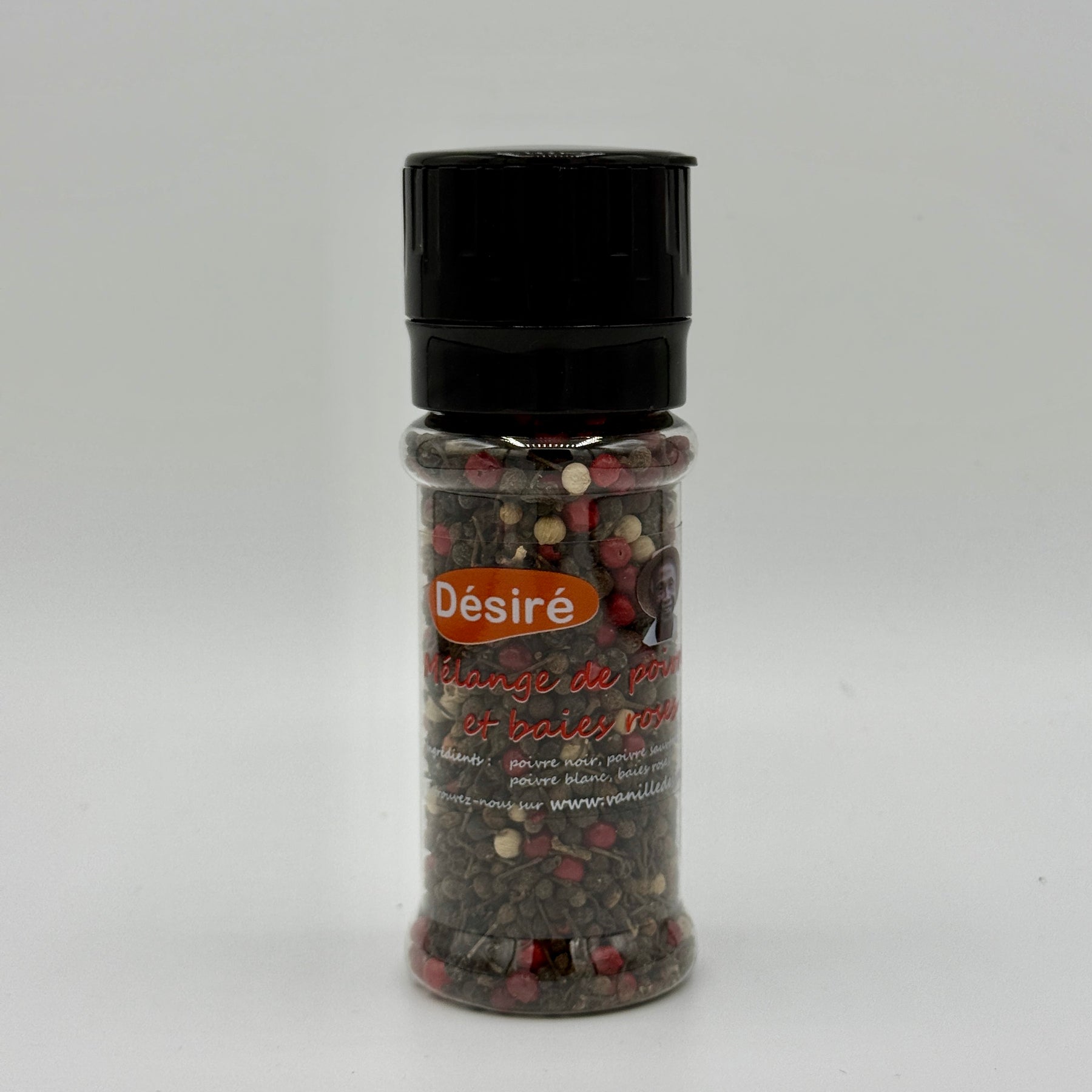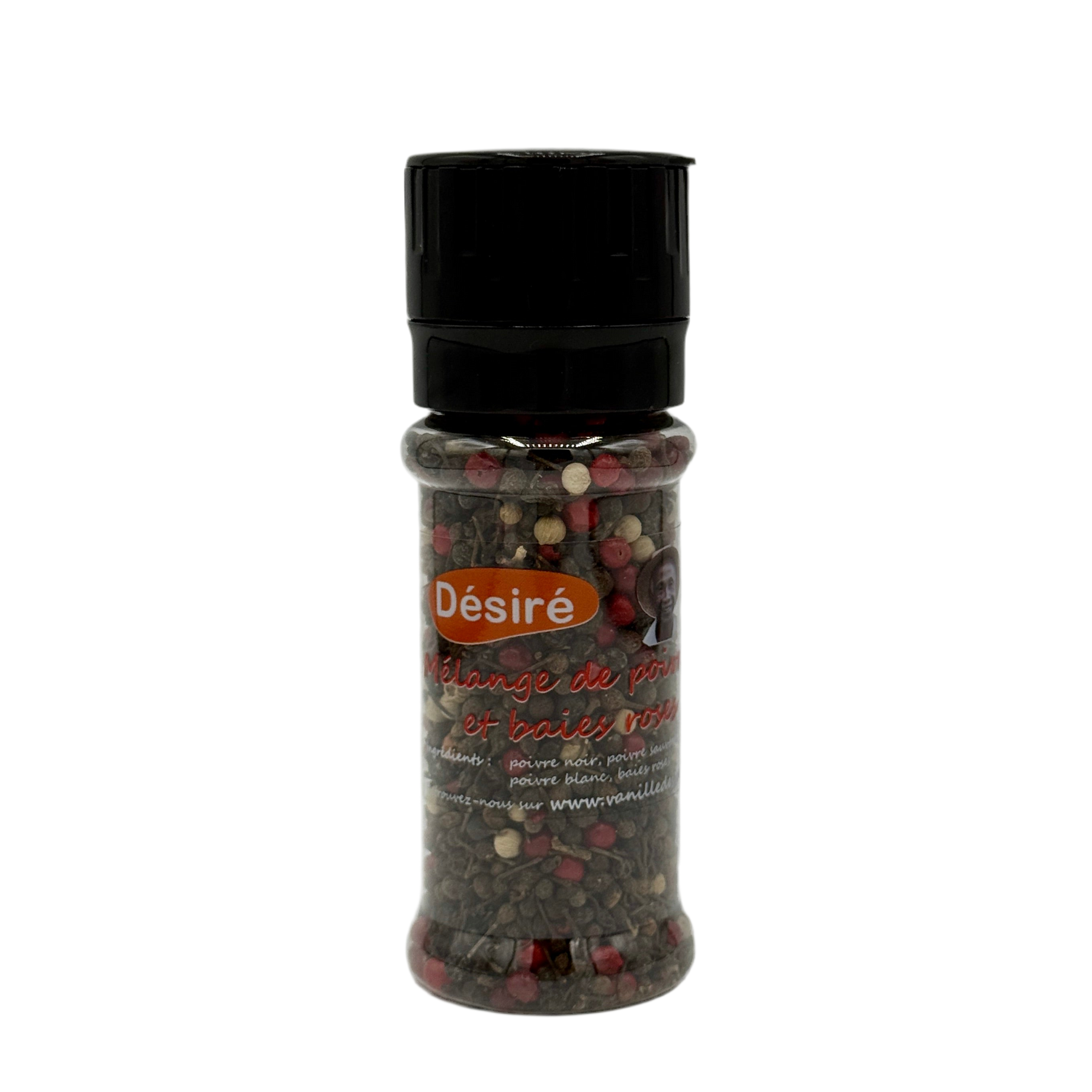 50g refillable mill combining wild pepper (voatsiperifery) , black pepper , white pepper and pink berries . A woody , floral and fruity balance ready to grind on meats, fish, vegetables and salads.