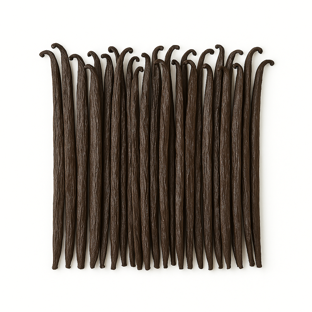 Grown on the east coast of Madagascar and prepared by hand , our Bourbon (Planifolia) offers a warm, floral and cocoa profile. Soft and shiny pods, naturally rich in vanillin.